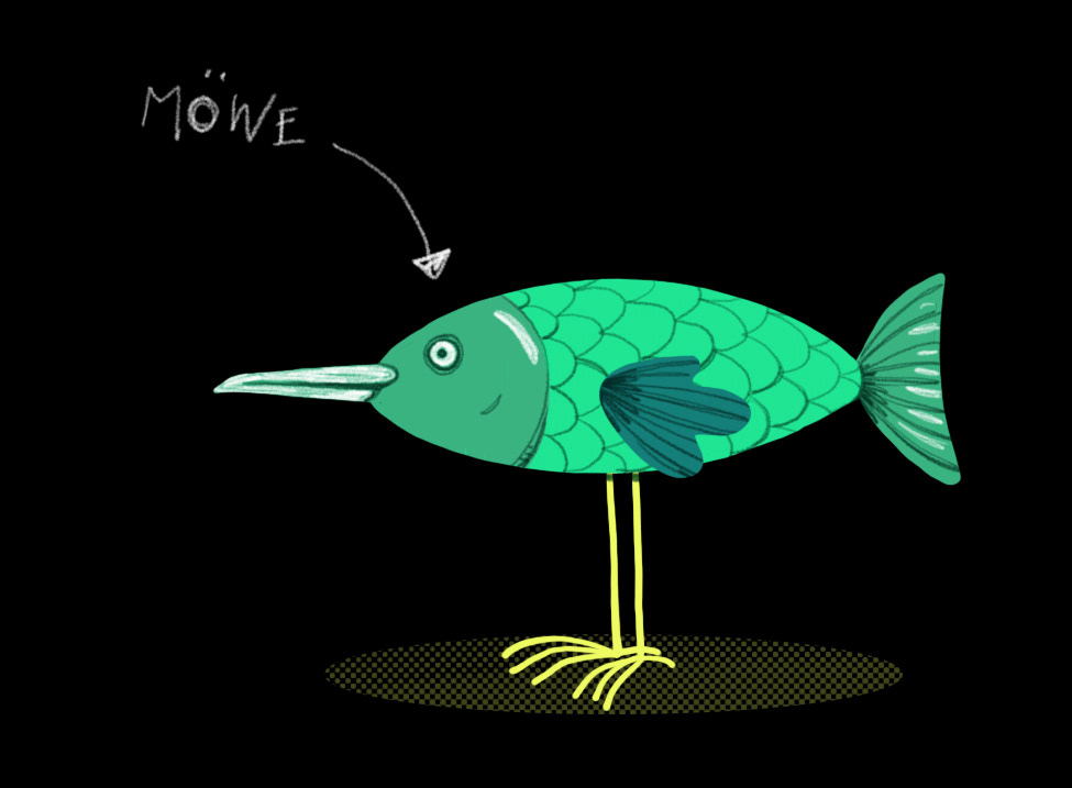In den Animationen für die Bühnenprojektion tauchen sowohl drei schlechtgelaunte Möwen, die große Sehnsucht nach der fernen Stadt und der Traum von Meer auf.