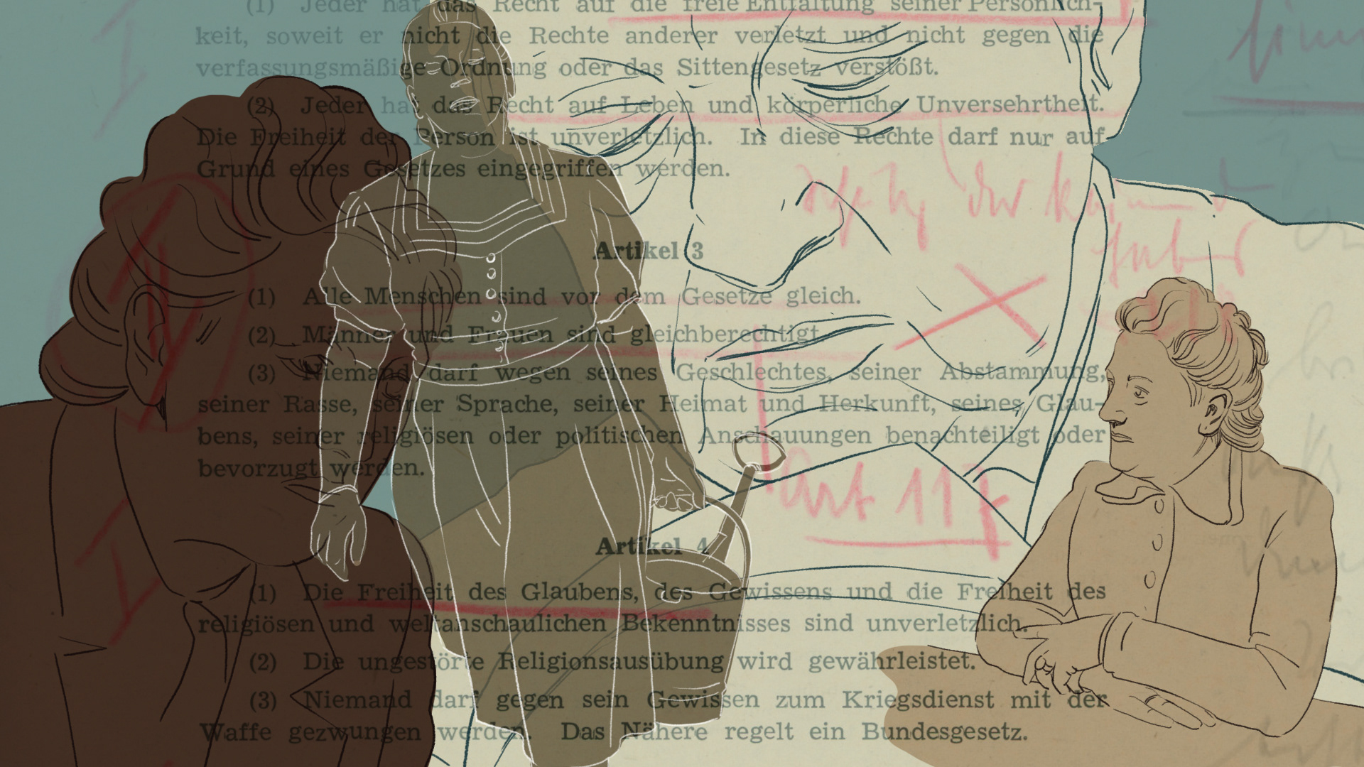 Der Kasseler Anwältin Elisabeth Selbert ist es maßgeblich zu verdanken, dass der Satz "Männer und Frauen sind gleichberechtigt" ins Grundgesetz aufgenommen wurde. In enger Zusammenarbeit mit dem AddF in Kassel durften Frauke Striegnitz und ich das Leben von Elisabeth Selbert im wahrsten Sinn des Wortes "nachzeichnen". Vielfältiges Original- Foto- und Dokumentenmaterial floss in die Bilder ein.