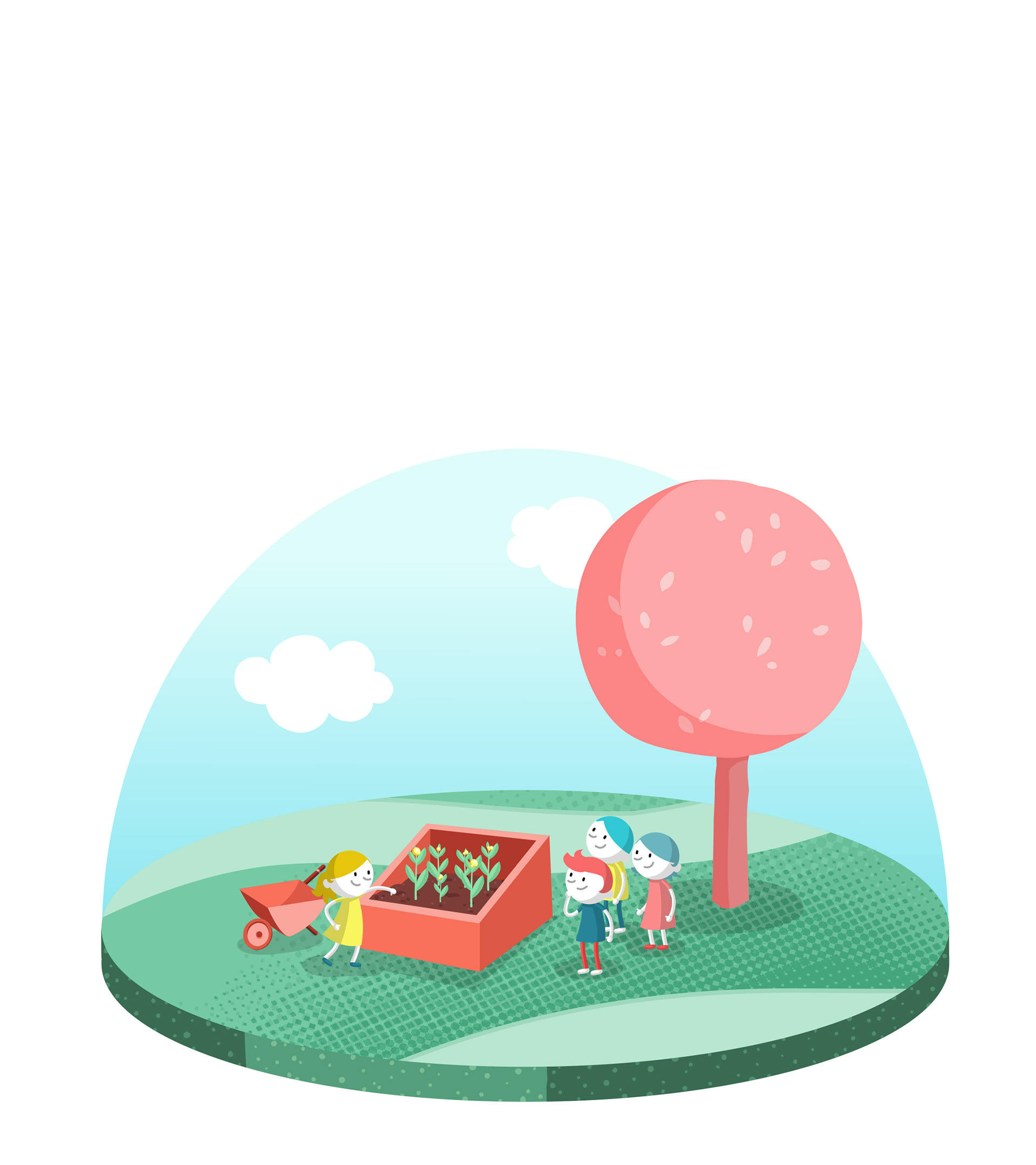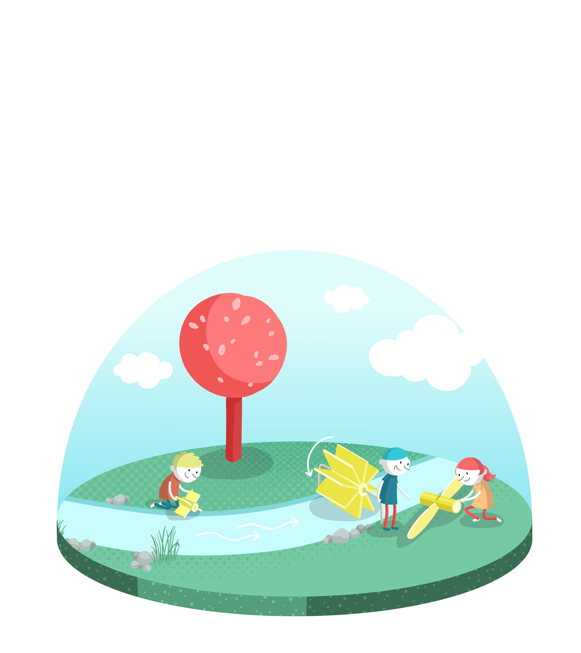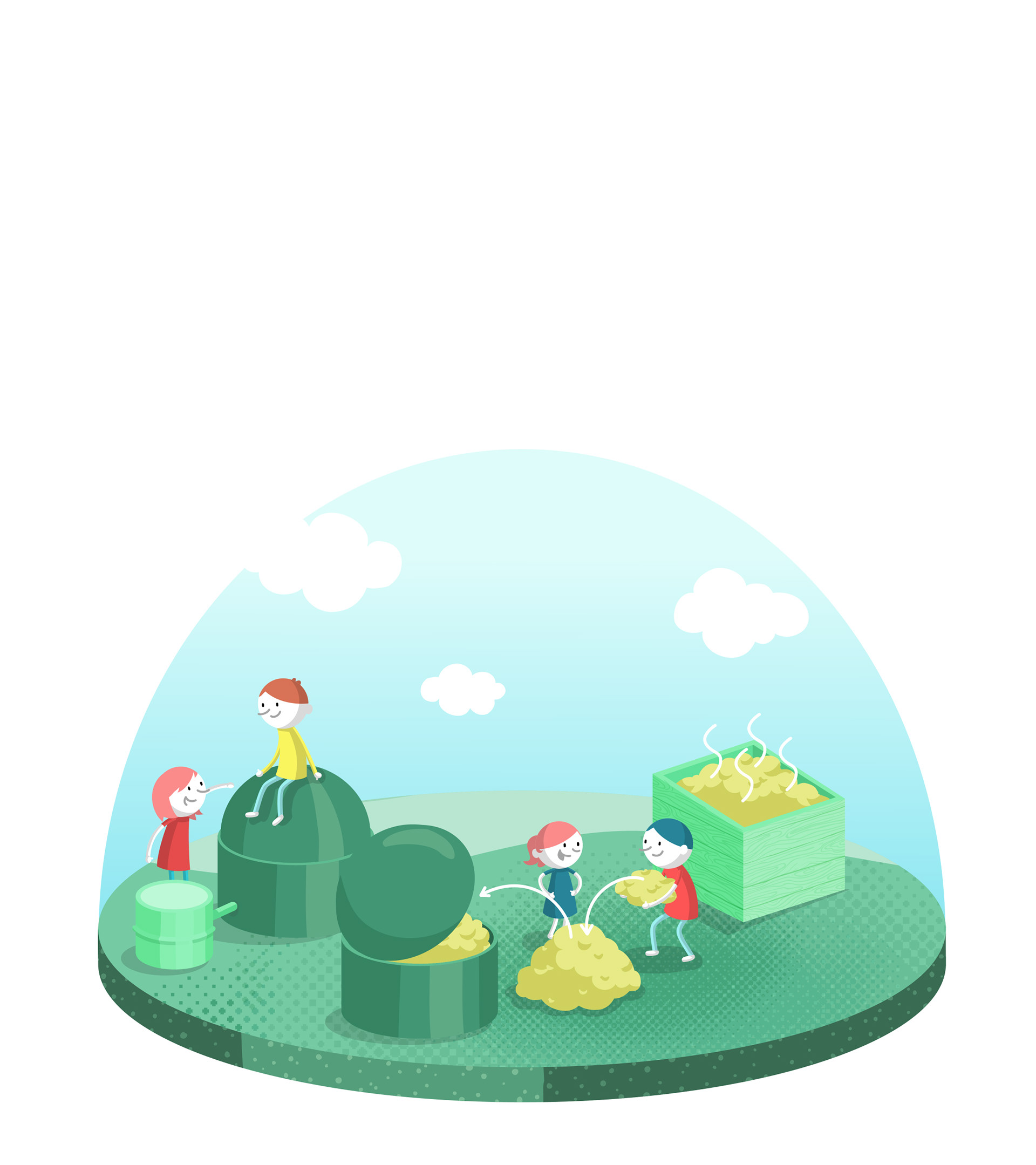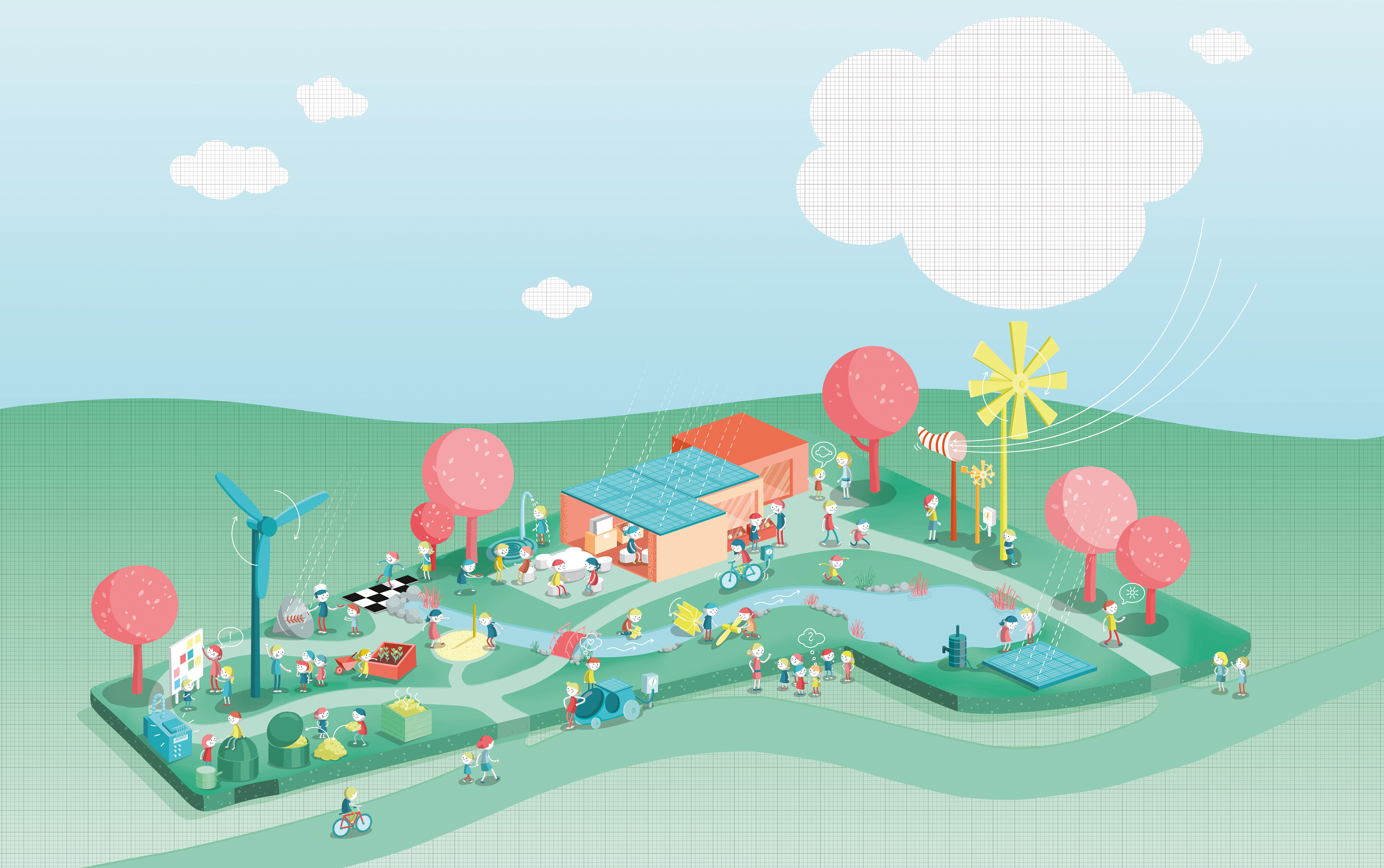 Die Illustration ist so aufgebaut, dass sie zum einen als Gesamtansicht funktioniert, zum anderen aber auch die verschiedenen Stationen als Einzelmotive ("Schneekugeln") entnommen werden können, um die unterschiedlichen Themen des Energiegartens unabhängig voneinander vorzustellen. Diese Systematik wurde auch im Hinblick auf eine mögliche spätere Nutzung im Rahmen eines Leitsystems entwickelt.